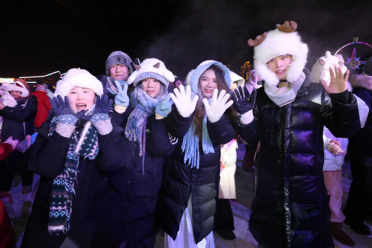 变幻莫测的光与影,极致绚烂的音与色,零下30多度的气温,丝毫没有阻挡人们喜迎新年的热情,歌舞《冰雪飞扬》《同心同梦》、歌曲《醉北方》《东北的冬》、舞蹈《萨满》等节目轮番上演,为居民游客呈现了一场精彩的文化盛宴,游客们不停地欢呼着,频频举起手机、相机记录着精彩的瞬间。“太爽了,这里有最极端最低的气温,但是有最好的热情,然后我们在这里跨年,能感受到整个内心从里到外都释放出来了,太棒了,太棒了。”上海游客王先生说。