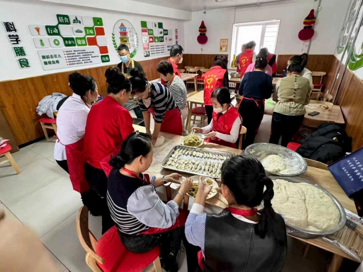 演出落幕,温暖接续。开放学院师生与老年大学志愿者迅速转场至养老院厨房,开启“包饺传情”环节。大家分工协作,一张张面皮在指尖翻折成月牙状,一盘盘饺子在托盘上整齐排列。每一道褶皱都包裹着对长者的诚挚祝福,每一份馅料都倾注着暖心关怀。午餐时分,热气腾腾的饺子端上桌,长者们品尝着鲜香,脸上洋溢着幸福笑容,舌尖的美味化作心间的温暖。