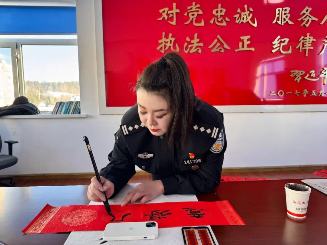 岁序更替,春祺已至,年味渐浓。为弘扬中华优秀传统文化,营造祥和喜庆的新春氛围,密切警民鱼水情,传递公安队伍的温情与关怀,漠河市警察协会立足职能,开展接地气、暖民心的便民利民活动,近日,组织开展送“万福”进“万家”写春联公益活动,以笔墨为媒,将新春祝福与平安期许送到辖区群众的心坎上。