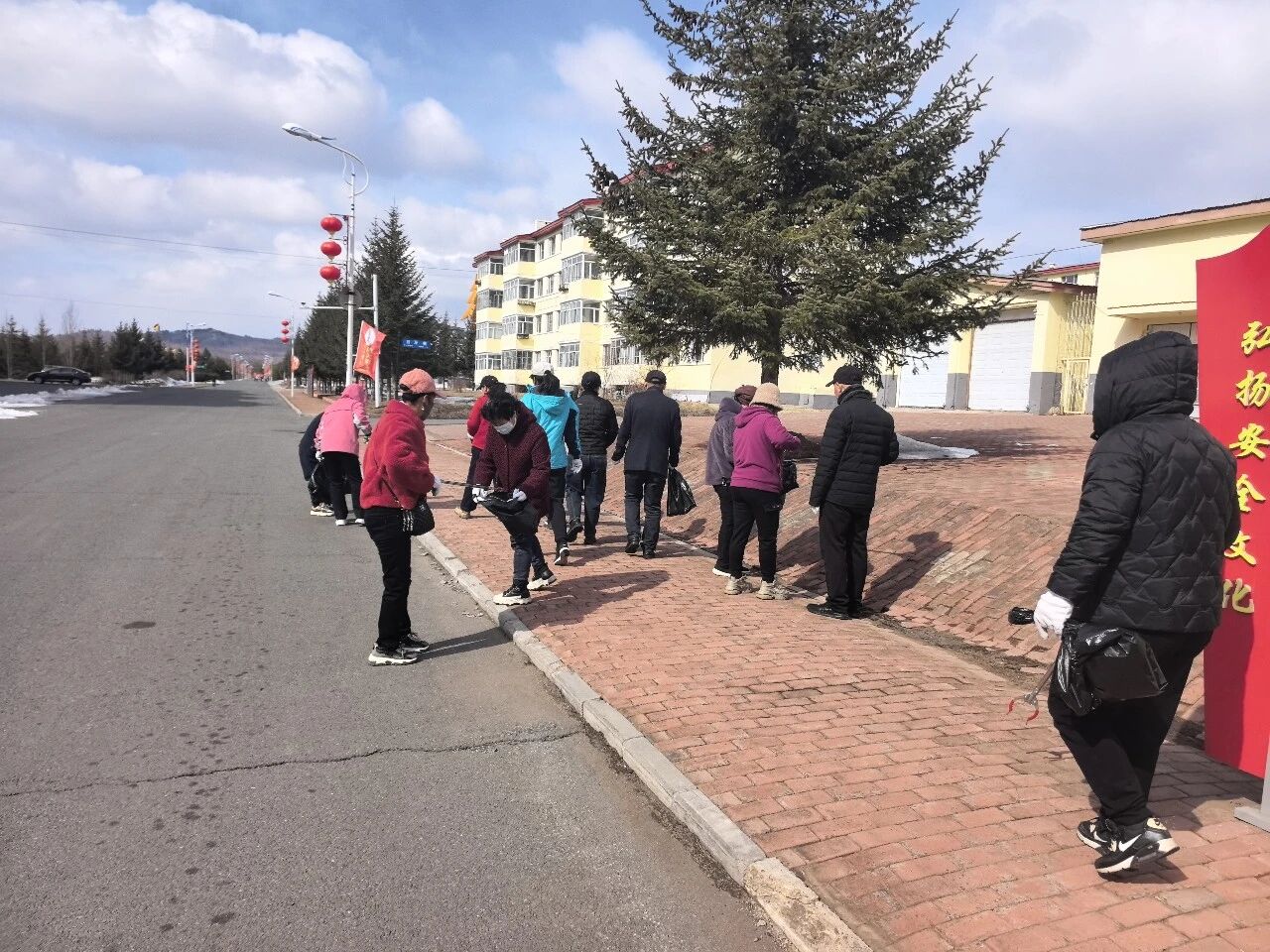活动中,志愿者沿镇内主次干道、绿化带及小区周边区域,重点捡拾烟头、白色垃圾、塑料袋等生活垃圾,细致排查卫生死角。同时,向居民发放文明环保宣传单,带动周边群众主动参与环境维护,营造“人人爱护环境、共建美丽家园”的良好氛围。