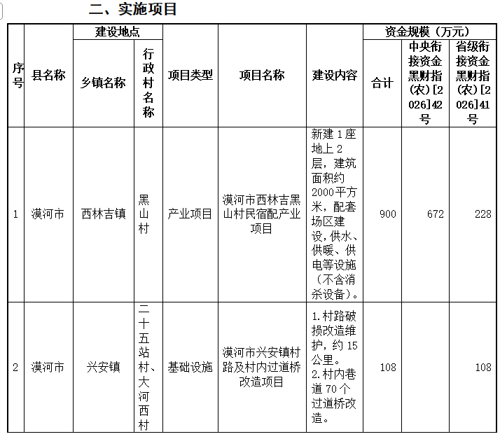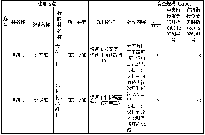 我市2026年第一批到账中央、省级财政衔接资金共计1309万元,其中黑财指(农)[2026]42号中央资金672万元;黑财指(农)[2026]41号省级资金637万元。