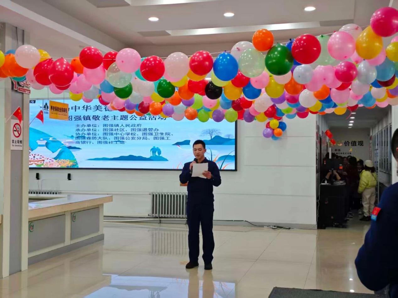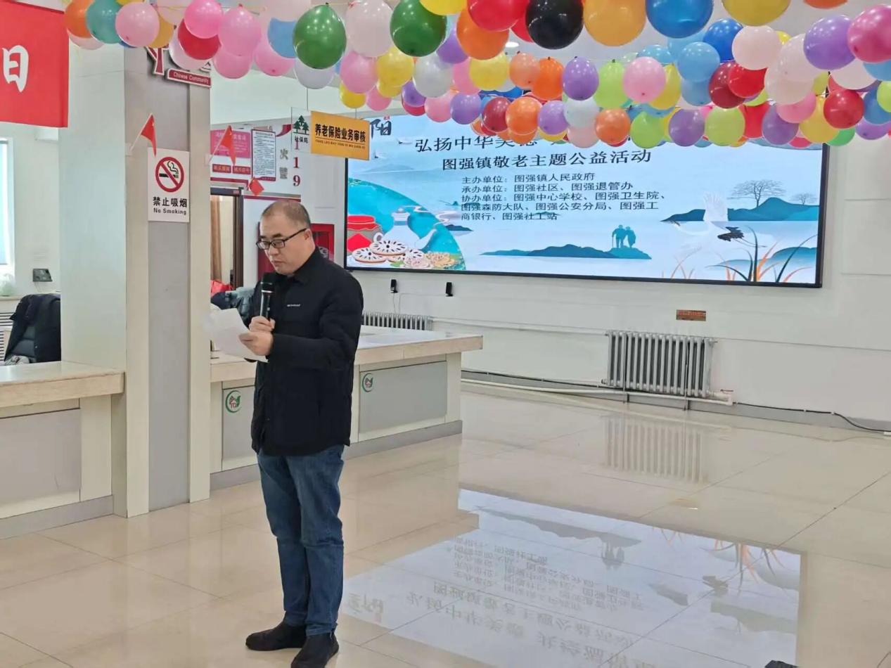 活动伊始,图强镇党委副书记倪猛登台致辞。他向在场老年朋友们致以诚挚的节日祝福,强调本次活动既是传承敬老爱老美德的重要载体,更是践行“以人民为中心”发展思想的生动实践,呼吁全社会共同关注老年人生活需求,用实际行动为老年群体筑起温暖港湾,让每一位老人都能安享幸福晚年。