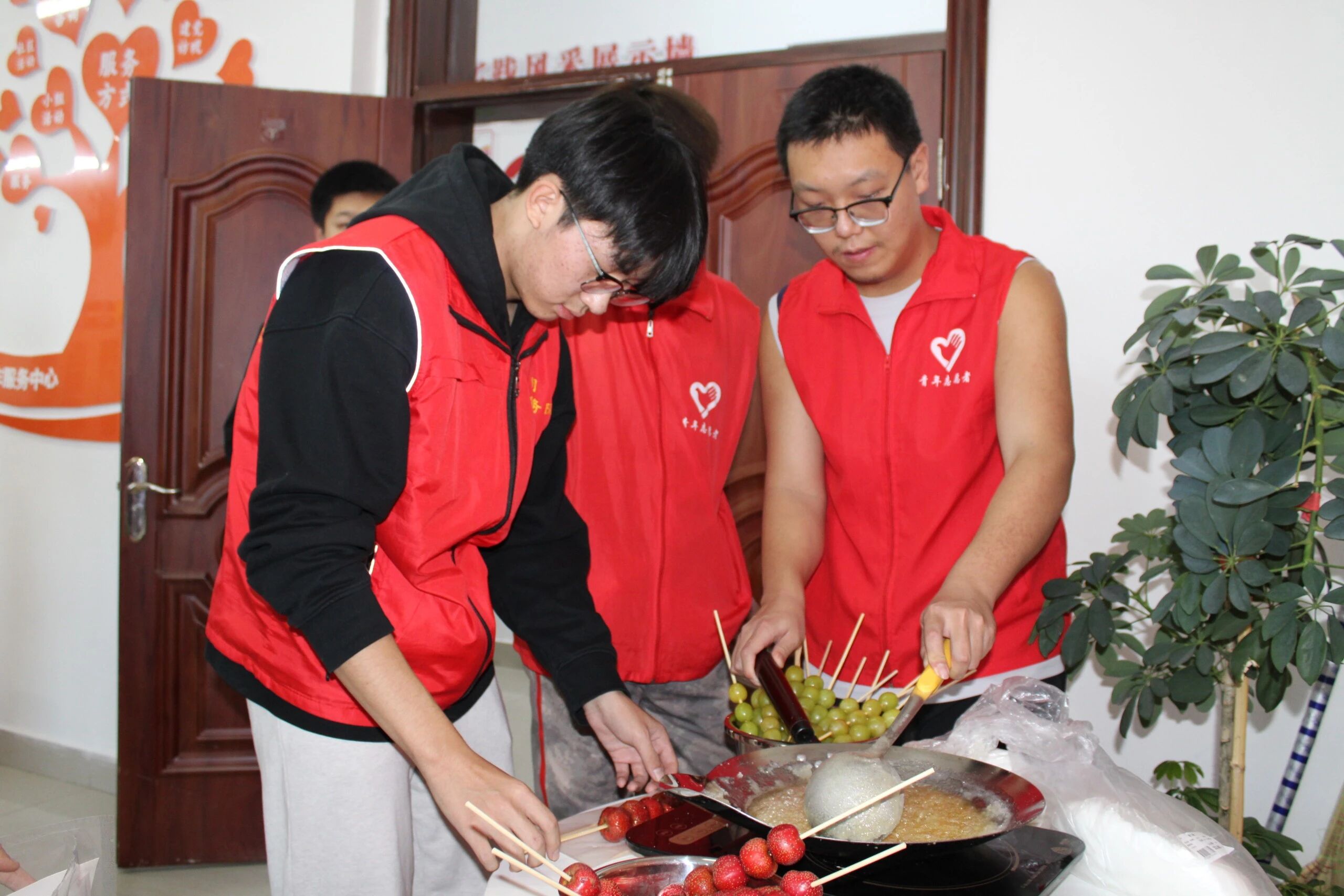 随后的手工糖葫芦制作环节更是欢乐满满,志愿者们提前清洗食材,带领孩子们串果坯、裹糯米纸。孩子们互相帮忙,在欢声笑语中,一串串造型精致的手工糖葫芦完成,酸甜的“甜蜜”在指尖传递,温暖的情谊在心底蔓延。