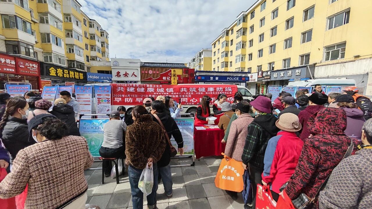 活动紧扣“共建健康城镇共筑健康防线”与“早防早筛早治同心携手抗癌”两大主题,通过悬挂横幅、摆放科普展架、发放健康宣传单及宣传品、开展互动问答等形式,向群众讲解爱国卫生、肿瘤防治等核心健康知识,解答群众健康疑问。同时,医护人员为居民免费测量血压、血糖,提供中医体质辨识、养生指导等服务。
