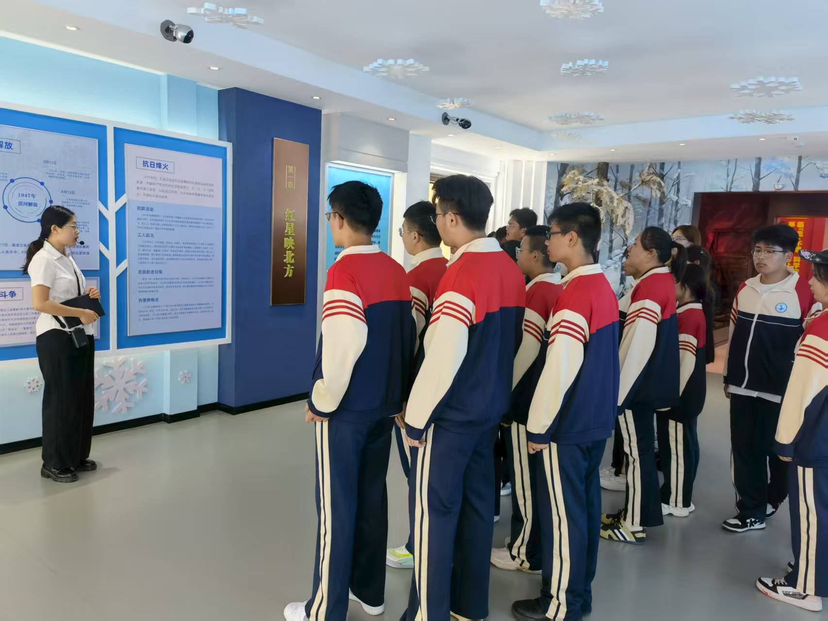 8月28日下午,漠河市关工委和教育局关工委联合开展“赓续红色血脉,点燃青春理想”抗战主题参观活动。五十名高一学生满怀着崇敬与期待之情走进市委党校。在展厅里,他们凝视着历史照片、实物陈列以及复原场景,认真聆听教师饱含深情讲述烽火岁月中的真实故事,陷入沉思,仿佛穿越时空,体会到抗战年代的艰辛与壮烈。同学们聚精会神地聆听、认真记录,在追溯与交流之中深化认知、产生共鸣,使抗战精神深植心中,进一步坚定了爱党爱国、奋发图强的理想信念。