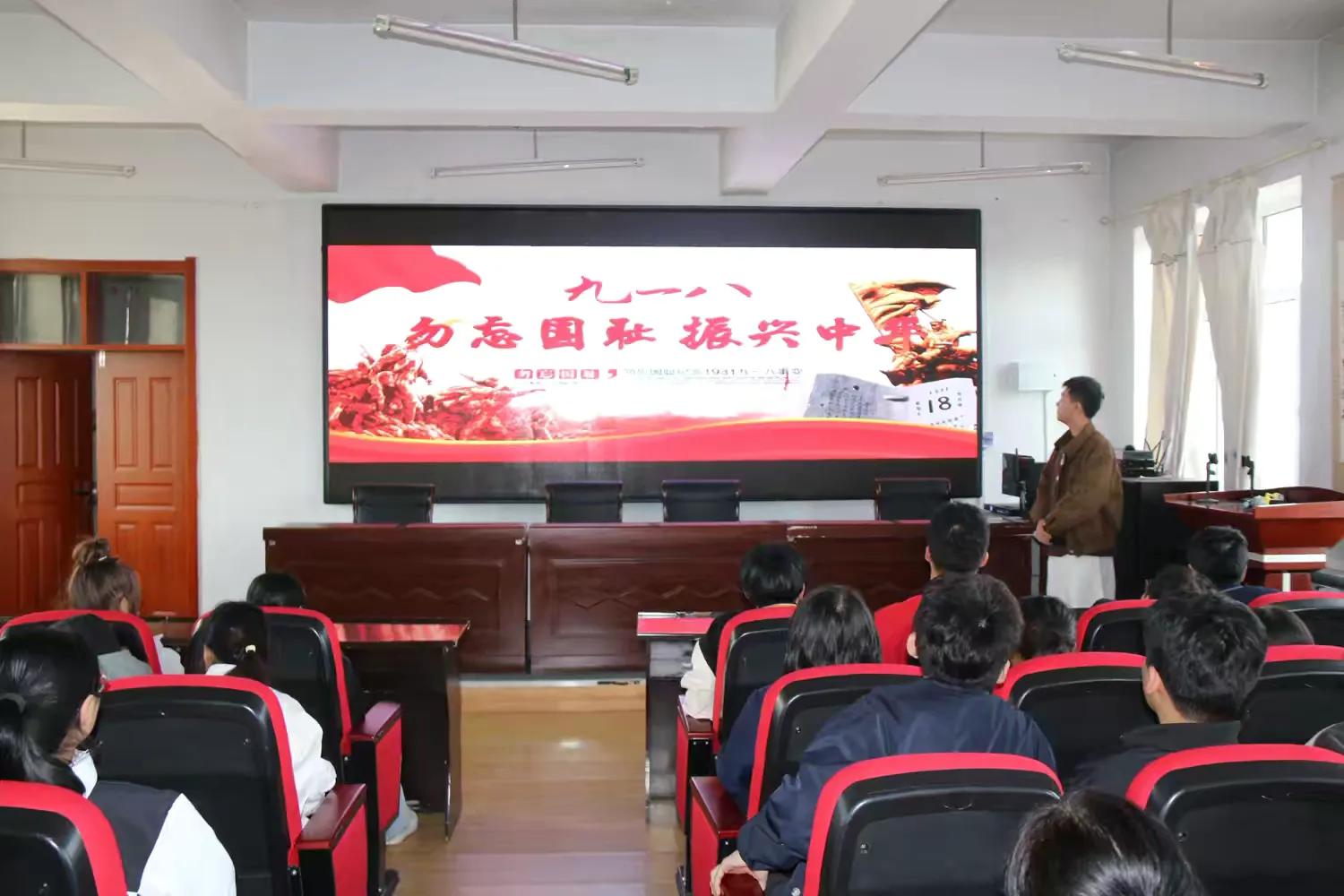 学校讲师以“从历史屈辱到民族复兴”为主线,通过图文史料等形式,详细剖析“九一八”事变的历史背景、日军暴行及中国人民的抗争历程,强调“落后就要挨打”的深刻教训,引导师生将爱国情怀转化为强国行动的自觉。最后,伴随警报响起,全体师生起立,低头默哀三分钟,深切缅怀在事变中遇难的同胞,追忆他们曾经的苦难与抗争,更在这份沉重中汲取奋进的力量。同时,教学楼电子屏播放“勿忘国耻,振兴中华”等宣传标语,营造浓厚的爱国主义教育氛围。