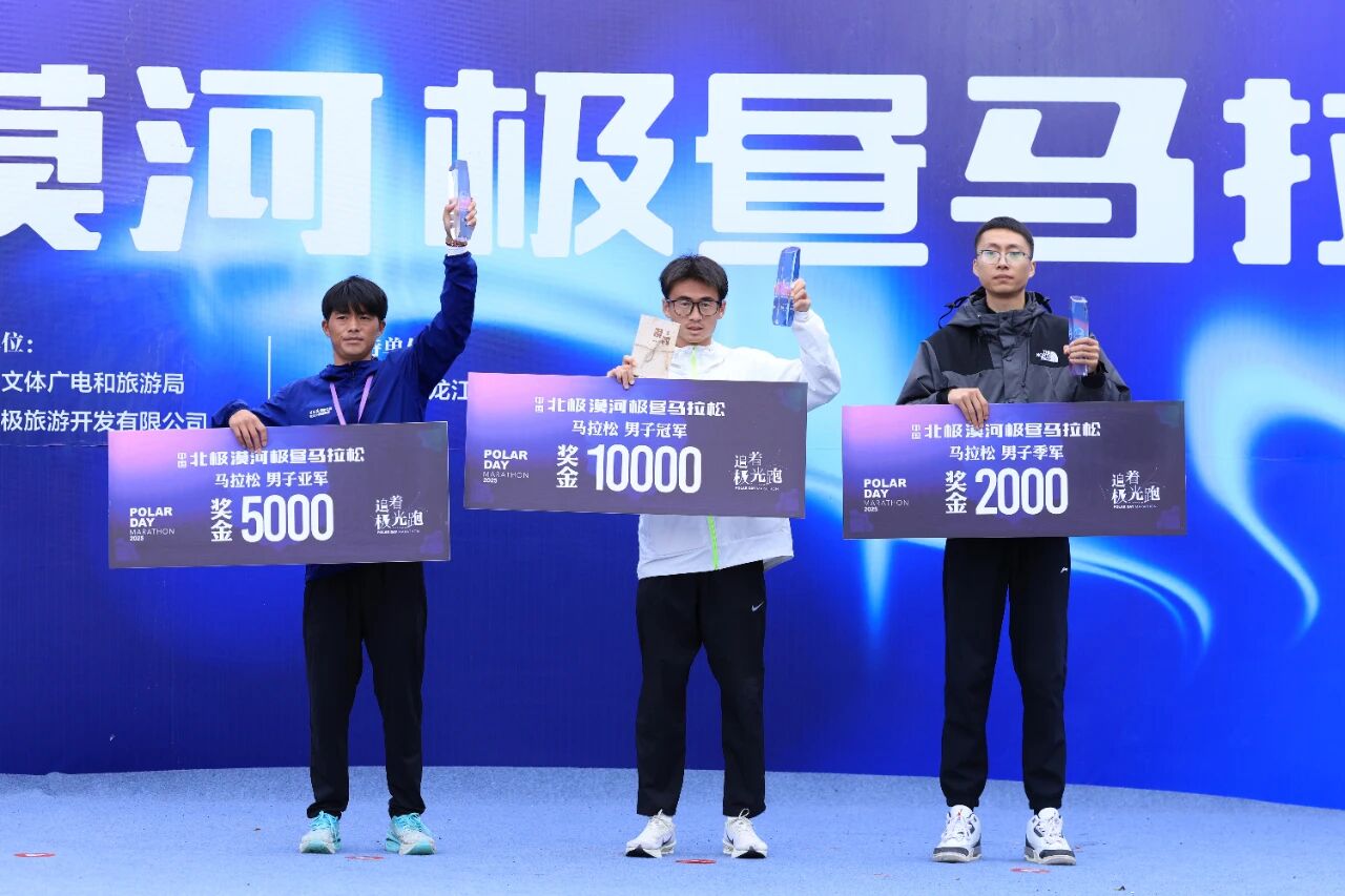 经过激烈角逐,来自辽宁大连的赵磊获得男子全马冠军,来自河南郑州的江玉杰获得女子全马冠军。男子半马冠军由漠河本地选手邵永超摘得,女子半马冠军由湖北武汉的万灵莉获得。今年,漠马首次推出全程马拉松、半程马拉松男女前三名终身门票政策,获得来自北极村的限量版终身门票。“获得北极村的终身门票,我也属于北极村的人了,我以后会常回家看看。”女子全马冠军江玉杰说。