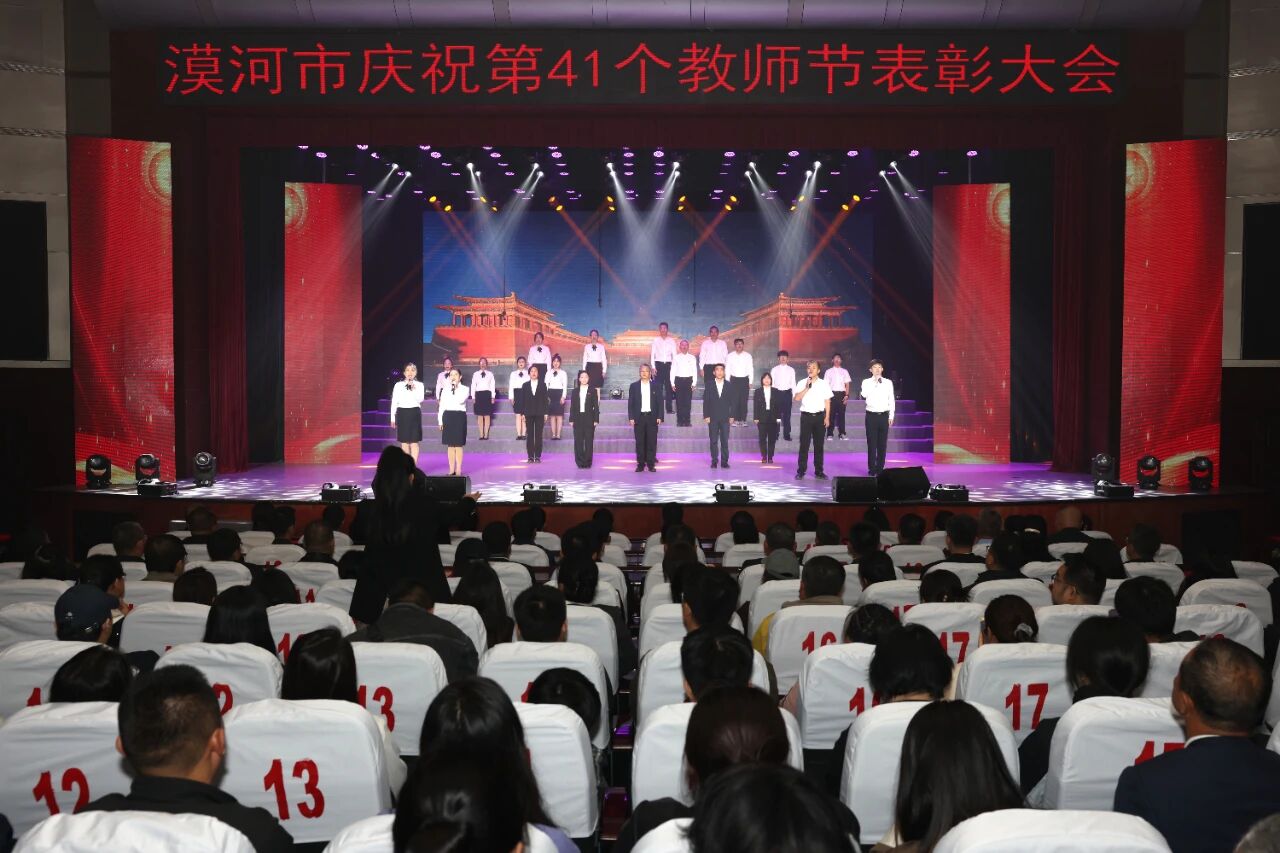 在第41个教师节来临之际,9月9日,漠河市举行庆祝第41个教师节表彰大会,表彰教育领域涌现出的优秀教师和先进教育工作者,向辛勤耕耘在教育一线的全体教师和教育工作者致以节日问候。