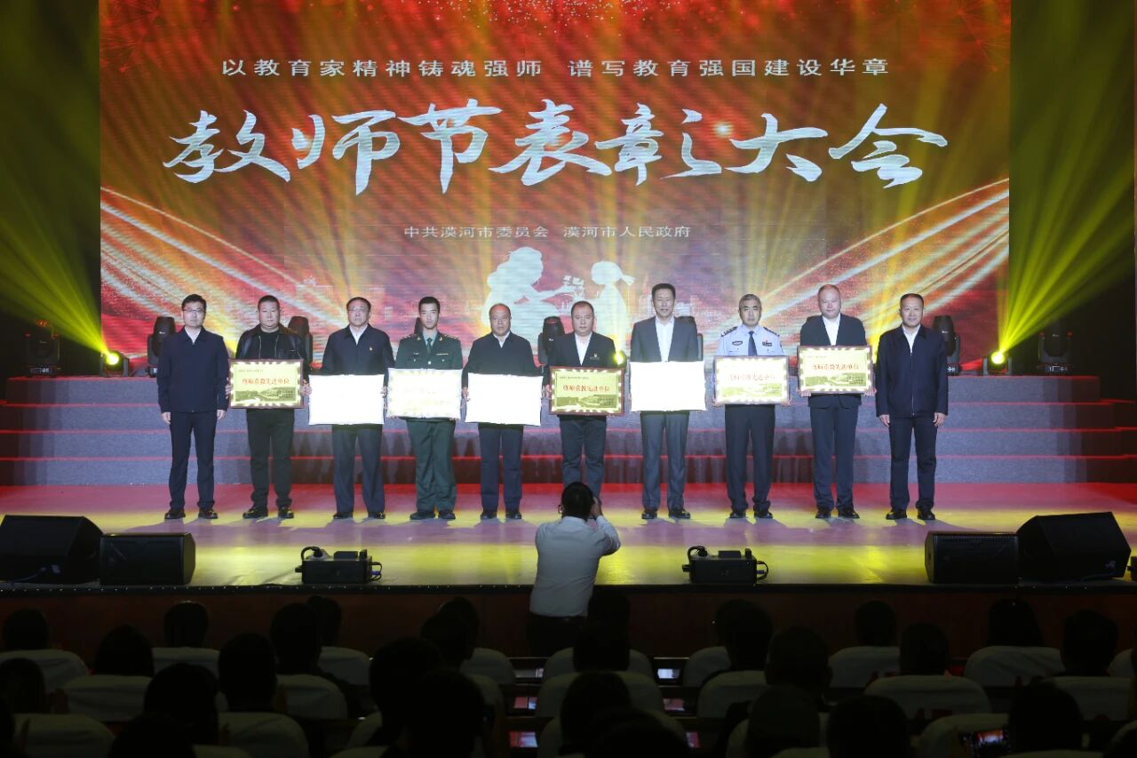 大会现场,对扎根边疆30余年、仍坚守在教学一线的张平、刘景环、李冬胜等8名优秀班主任教师和曹建辉、刘畅2名北红小学支教教师,以及市级优秀教师代表、先进教育工作者代表颁发了荣誉证书。为尊师重教先进单位漠河林业局、阿木尔林业局、市关心下一代工作委员会、市公安局、北极镇人民政府、解放军驻北红村某部、宏伟矿业有限公司、市龙鑫城市投资建设发展有限公司颁发了奖牌。