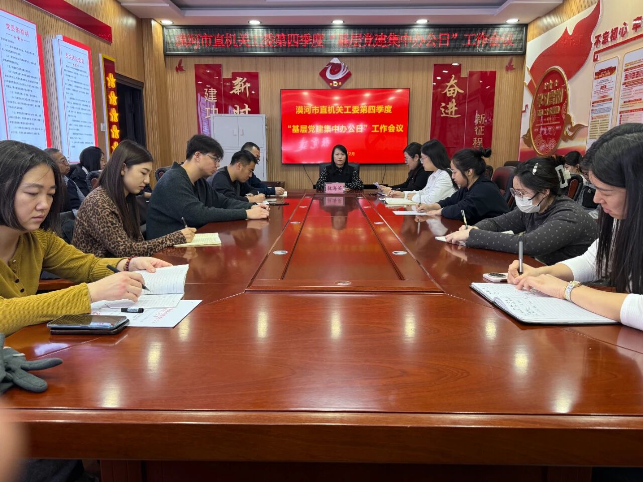 为深入学习贯彻党的二十届四中全会精神,提升基层党建规范化水平,12月22日,市直机关工委召开第四季度“基层党建集中办公日”工作会议。