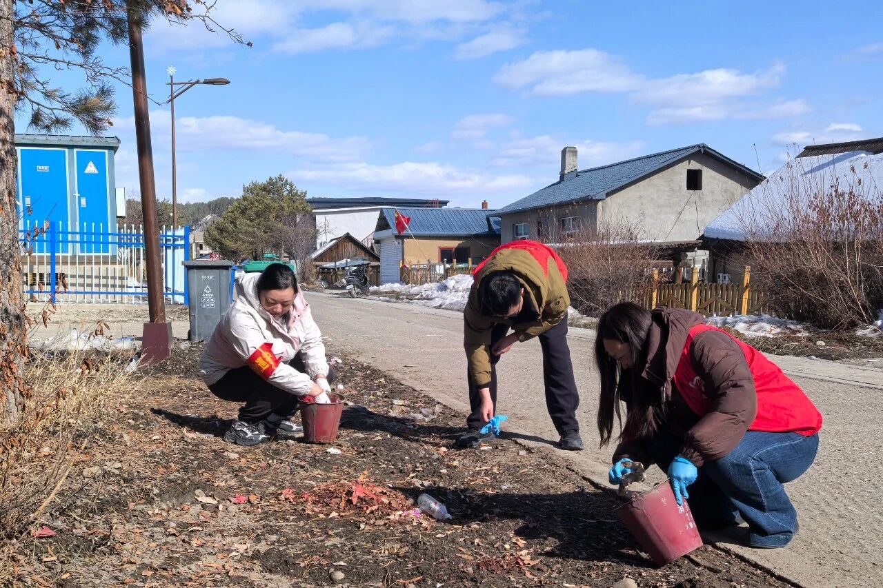 志愿者手持扫帚、铁锹、夹子、垃圾袋等工具,对镇内主街两侧、公共活动广场、沟渠沿线及房前屋后开展拉网式清理。大家分工协作、干劲十足,仔细捡拾路面、沟渠旁的白色垃圾、塑料袋、枯枝杂物,彻底清除积雪融化后残留的垃圾。针对部分村民门前乱堆乱放、杂物占道等问题,志愿者耐心开展宣传劝导,讲解人居环境整治的重要意义,主动协助村民整理堆放物品、清扫门前卫生,引导村民养成“门前三包”、爱护环境的良好习惯,自觉参与乡村环境共建。