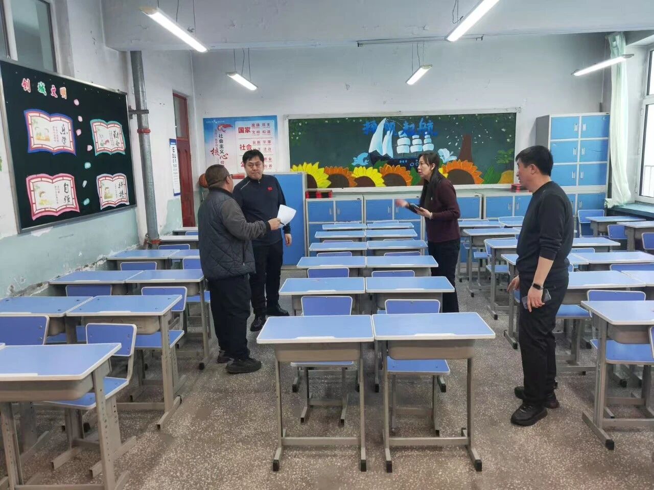 检查组重点围绕校园用电安全、教室课桌椅及教学设备等内容进行逐项核查,仔细检查电路线路是否老化破损、铺设是否规范有序,各类电器设备运行是否正常、开关插座是否安全,同时详细查看了教室课桌椅是否牢固完好、有无松动损坏情况,并逐一核对教学备品、办公用品是否配备齐全、摆放规范。对排查过程中发现的问题与隐患落实到人、立行立改,坚决把各类安全隐患消除在萌芽状态。